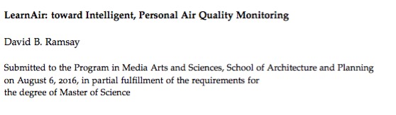 The first LearnAir device was co-located with a Federal MassDEP sensor for 2 months, and the minute-resolution data was used to explore the viability of machine learning to predict sensor accuracy. A second, handheld version has also been prototyped and is currently under development.